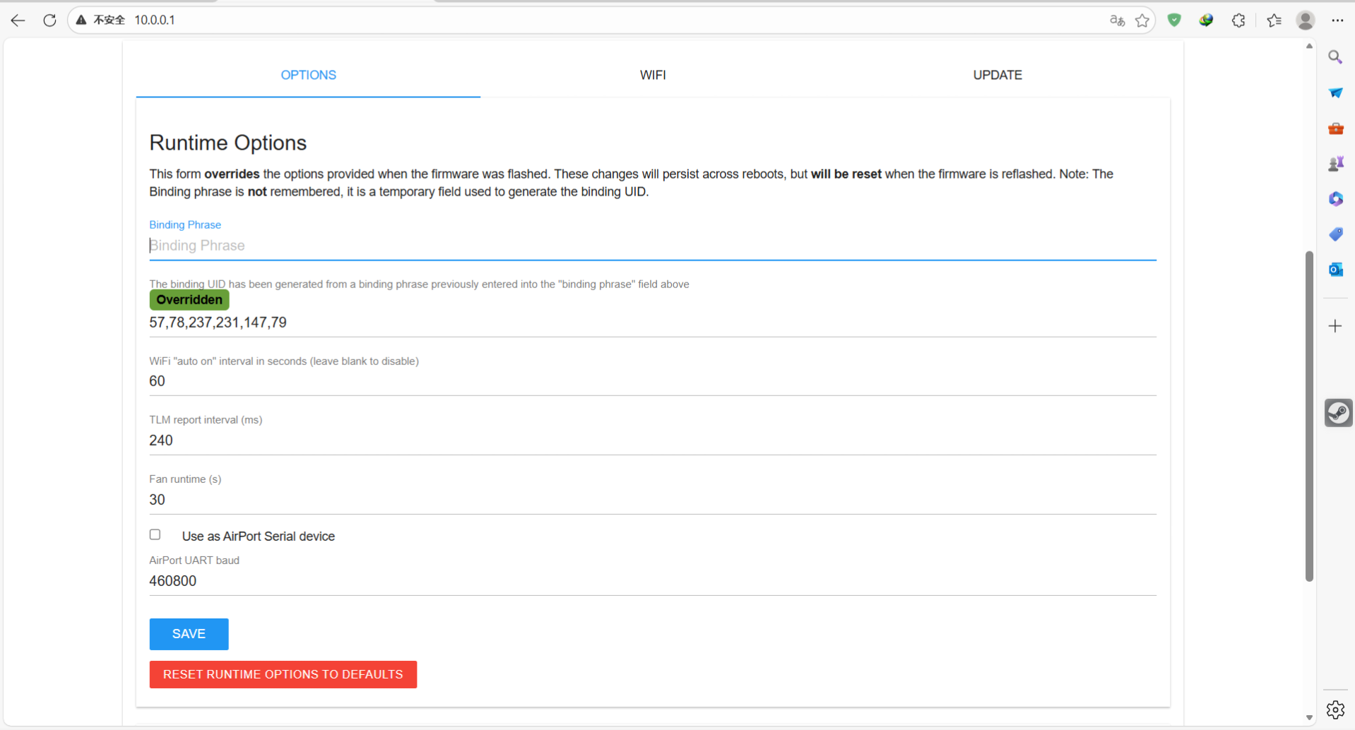 遥控将发射 WiFi 信号,SSID 一般为“ExpressLRS TX”之类的名称。密码为expresslrs